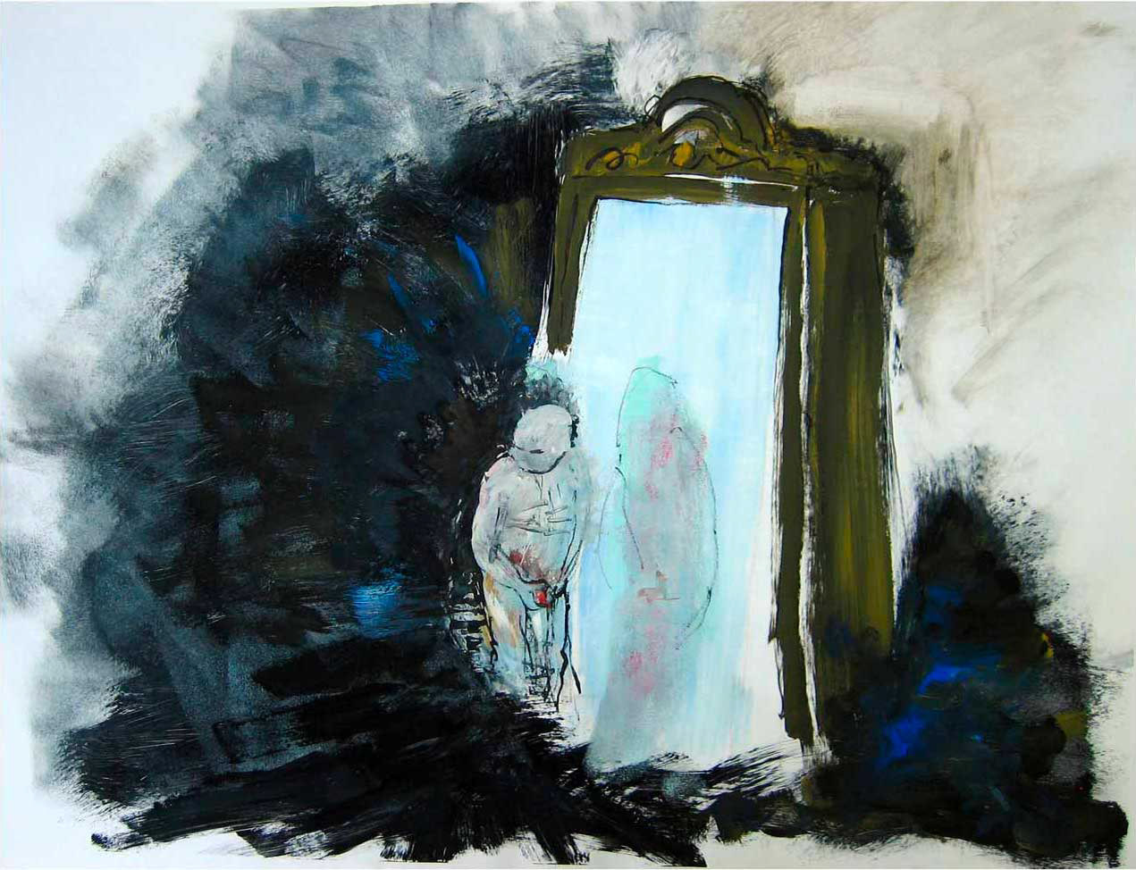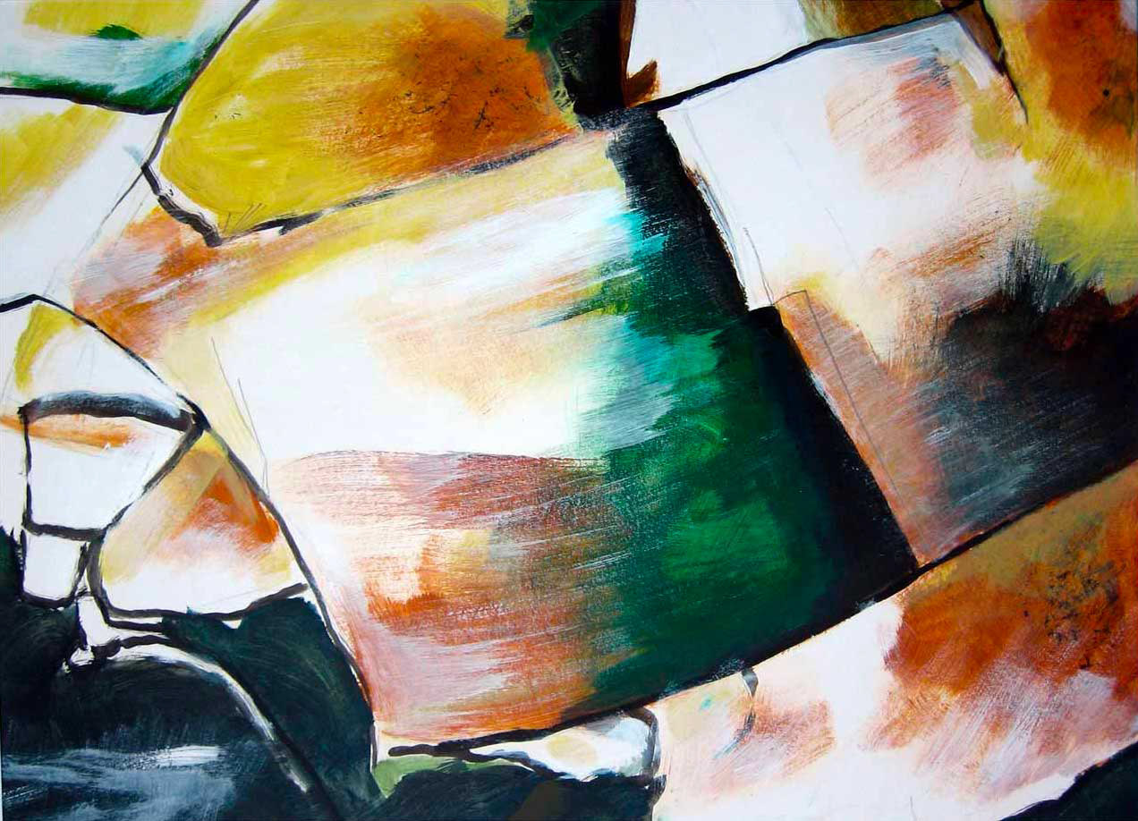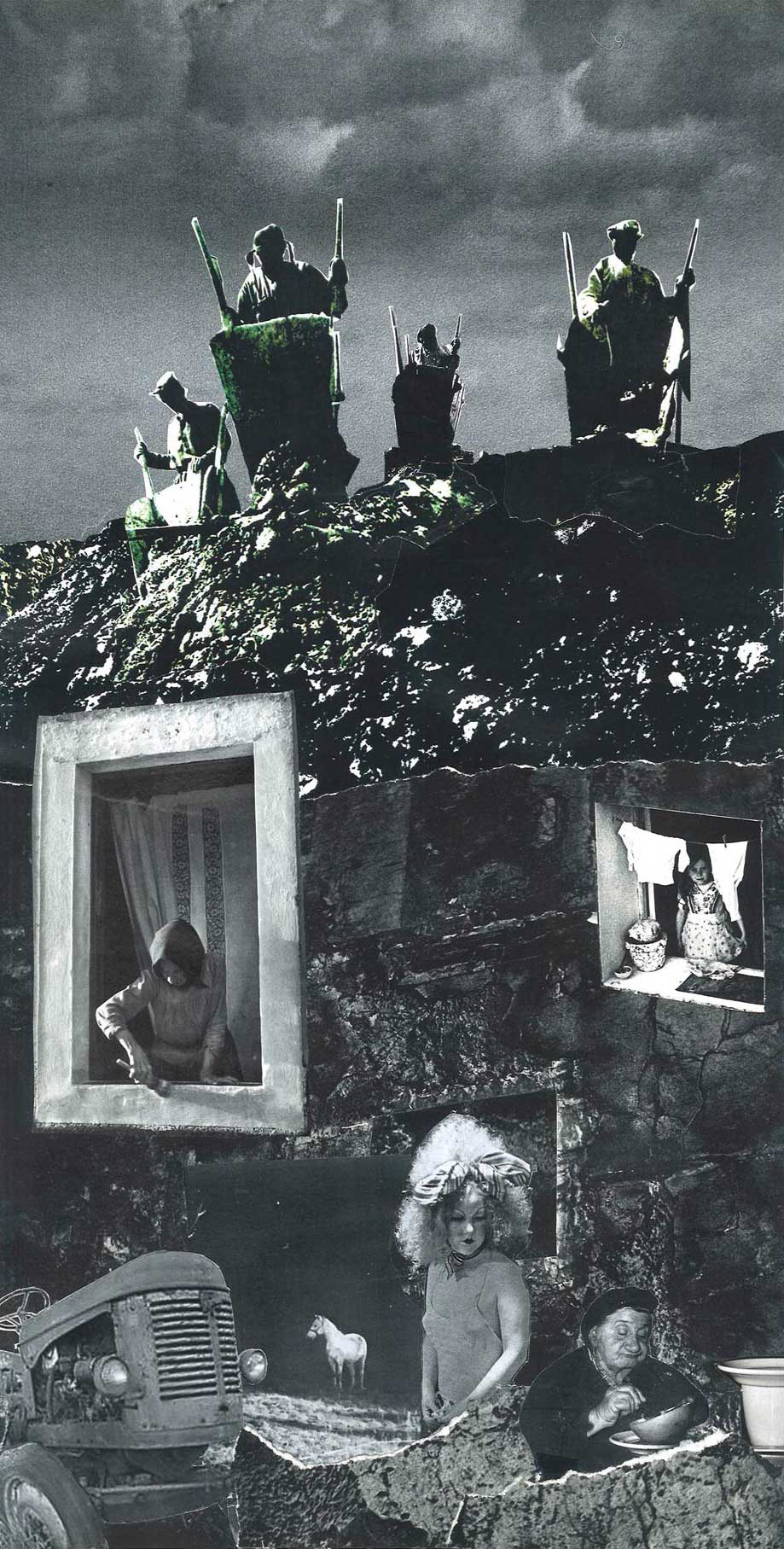 Crayons et pinceaux, magazines, cutter et colles… En vrac quelques collages, peintures (aquarelles, lavis, acrylique) et divers…