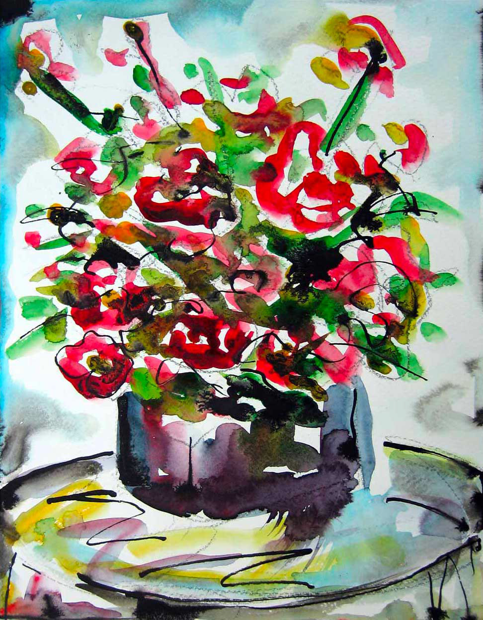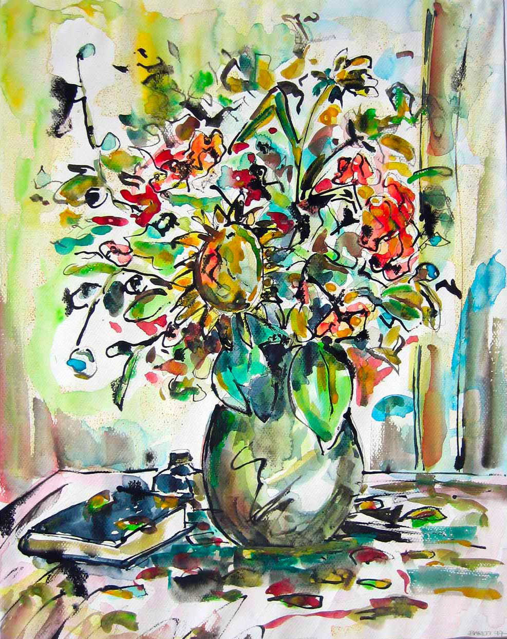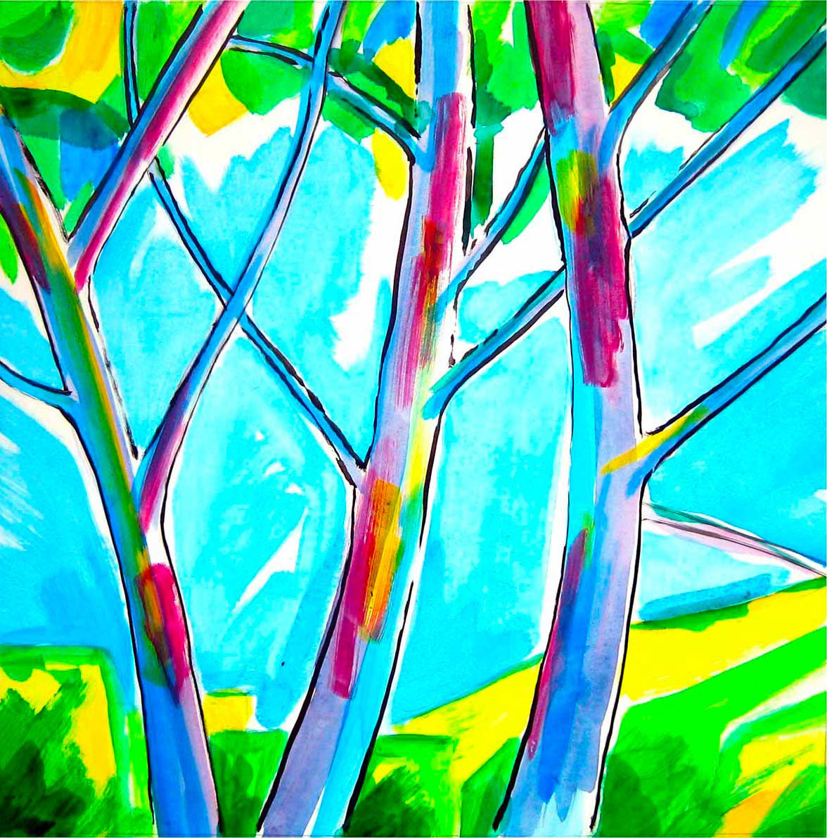Crayons et pinceaux, magazines, cutter et colles… En vrac quelques collages, peintures (aquarelles, lavis, acrylique) et divers…
